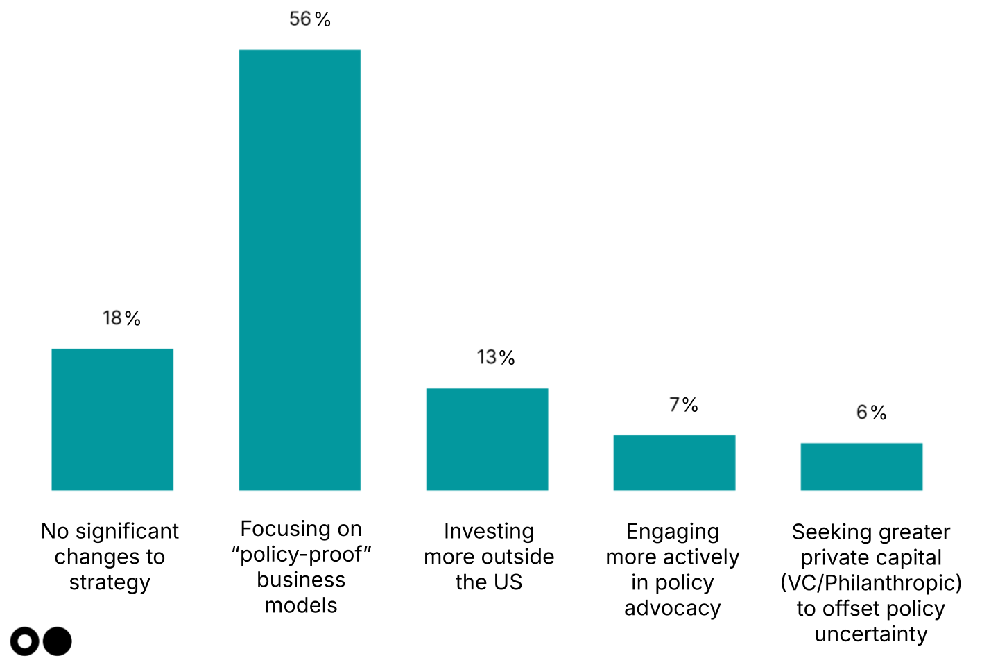 Policy whiplash looms largest. Over half of respondents flagged policy uncertainty as the top concern for climate tech in 2025–2026, outweighing worries about commercialization shifts (21%), macroeconomic conditions (21%), or lingering overvaluation hangovers (5%). We’ve said it before and we’ll say it again, but investors are allergic to uncertainty.