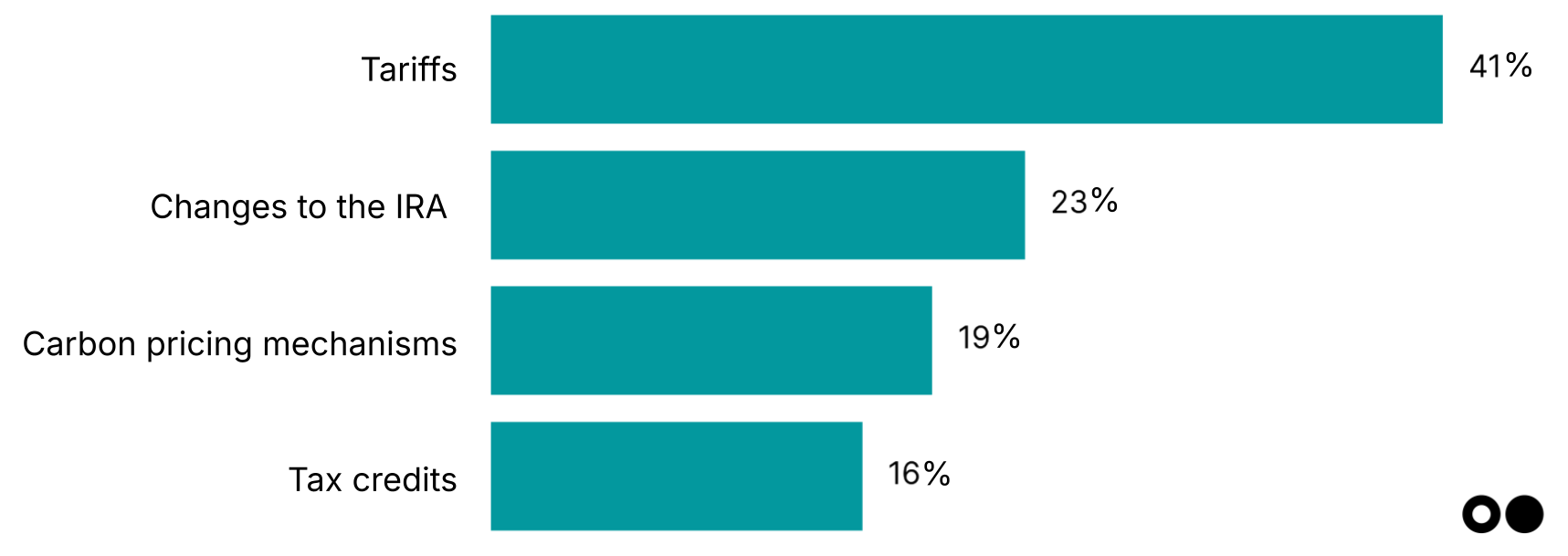 Tariffs take center stage in investor risk calculus: 41% of respondents cited tariffs as the most impactful policy lever for their portfolio. With US industrial policy leaning protectionist and global trade tensions rising — and physical products made up the majority of deals (54%) in 2024 for the first time since 2021 — supply chain risk could hit hard for tech like solar panels, batteries, and heat pumps. Investors are bracing for cost volatility and supply chain reshuffling that could reshape manufacturing strategies and delay deployments, especially with tax credit and FEOC rule changes potentially on the horizon.