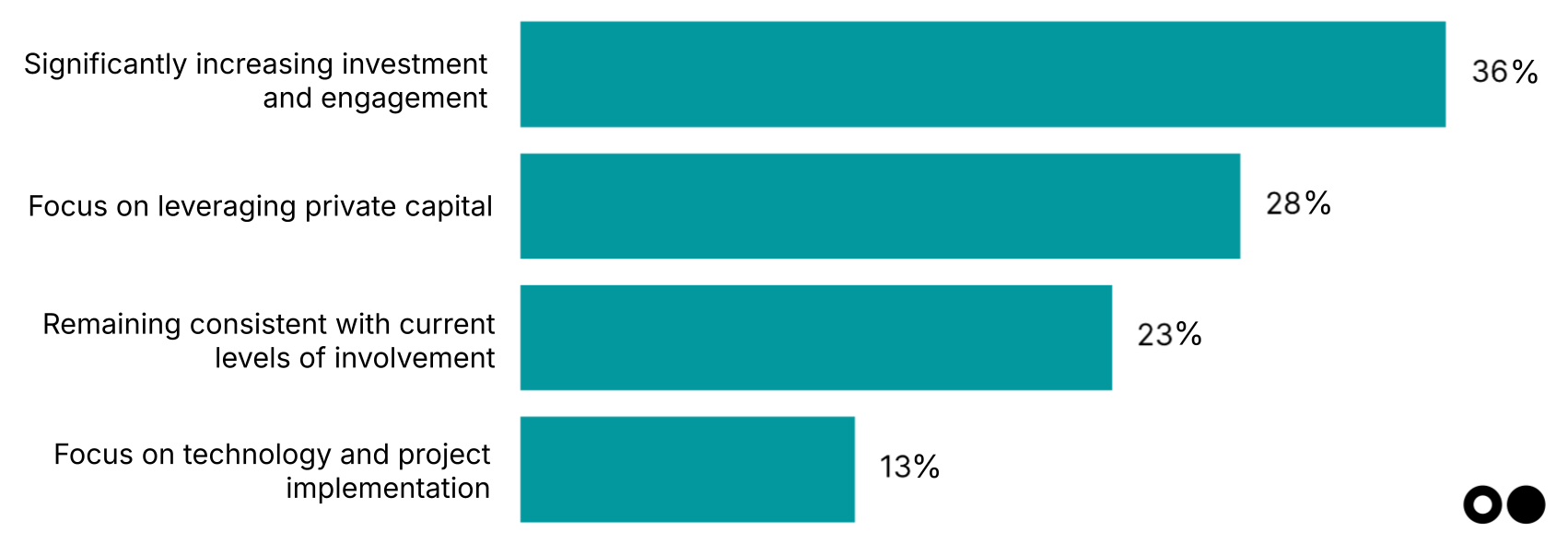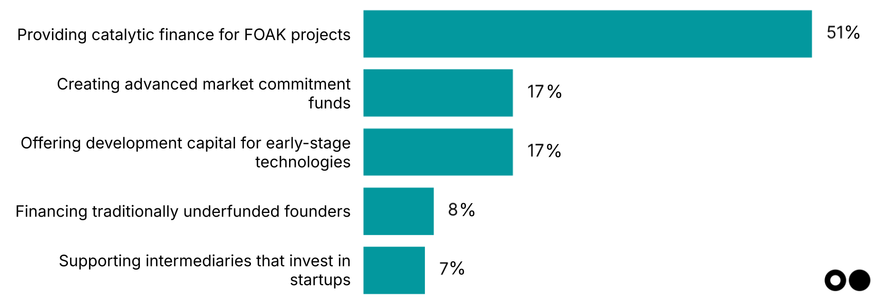 Philanthropy has the opportunity to bridge the critical “valley of death” between technical proof and commercial viability. FOAK remains the critical bottleneck in climate tech scaling, and traditional capital consistently fails to bridge this gap. Half of respondents identify FOAK project financing as philanthropy’s most catalytic role over the next 12 months — more than double any other response. This confirms what Elemental has experienced firsthand: patient, risk-tolerant capital can transform promising climate technologies from pilot projects to bankable commercial assets. Case in point: Elemental's $500k-$2.25m investments have unlocked $13.5m-$384m in follow-on capital.
