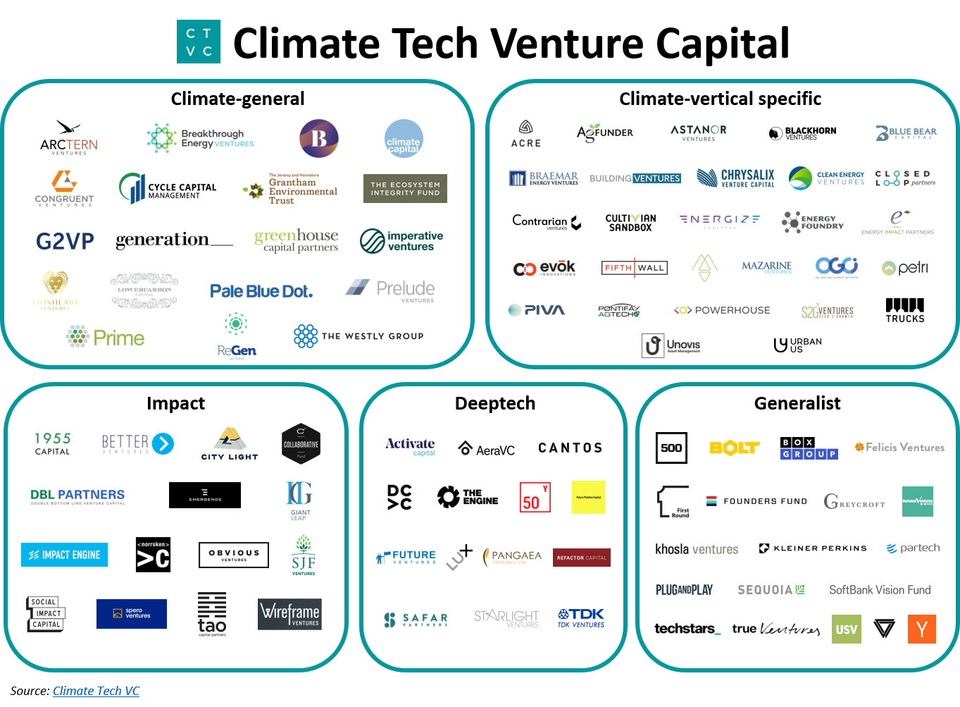 Climate-vertical specific: Investing in a specific vertical (e.g., agriculture, energy) within the broader climate tech ecosystem