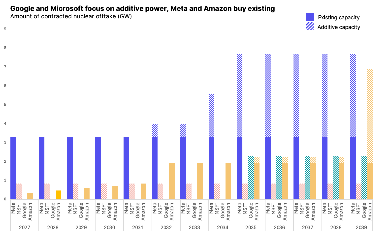 Meta signed a slate of nuclear deals with Oklo, TerraPower, and Vistra to secure up to 6.6GW of power by 2035 for data centers and AI, combining new advanced reactors with long-term PPAs from existing plants in Ohio and Pennsylvania. Meanwhile, Amazon bought the 1.2GW Sunstone solar-plus-storage project from bankrupt Pine Gate Renewables for $83M, following in Googleâs footsteps to vertically integrate into the power stack. And Microsoft pledged to fully cover power and grid infrastructure costs.