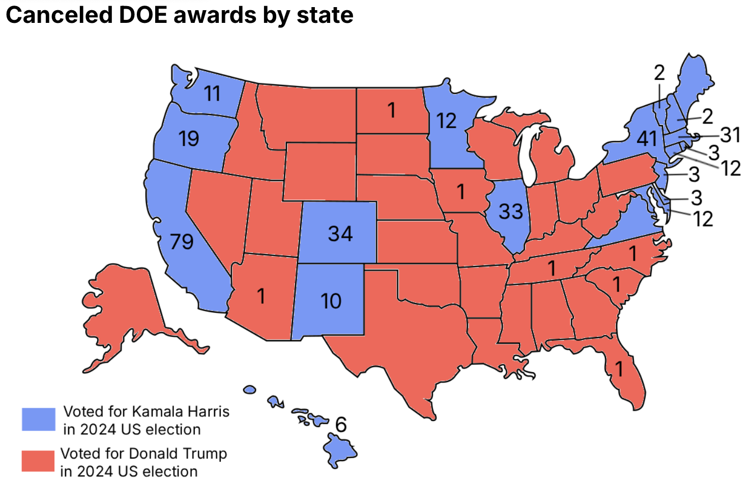 Second, a federal judge ordered the Department of Energy to reinstate nearly $28m in Biden-era grants that the Trump DOE abruptly canceled last October. (It voided more than 320 awards last fall, totaling more than $7.5bn). The judge ruled the cancellations violated the Fifth Amendment because the administration explicitly targeted awards in states that voted for Kamala Harris in the 2024 election.