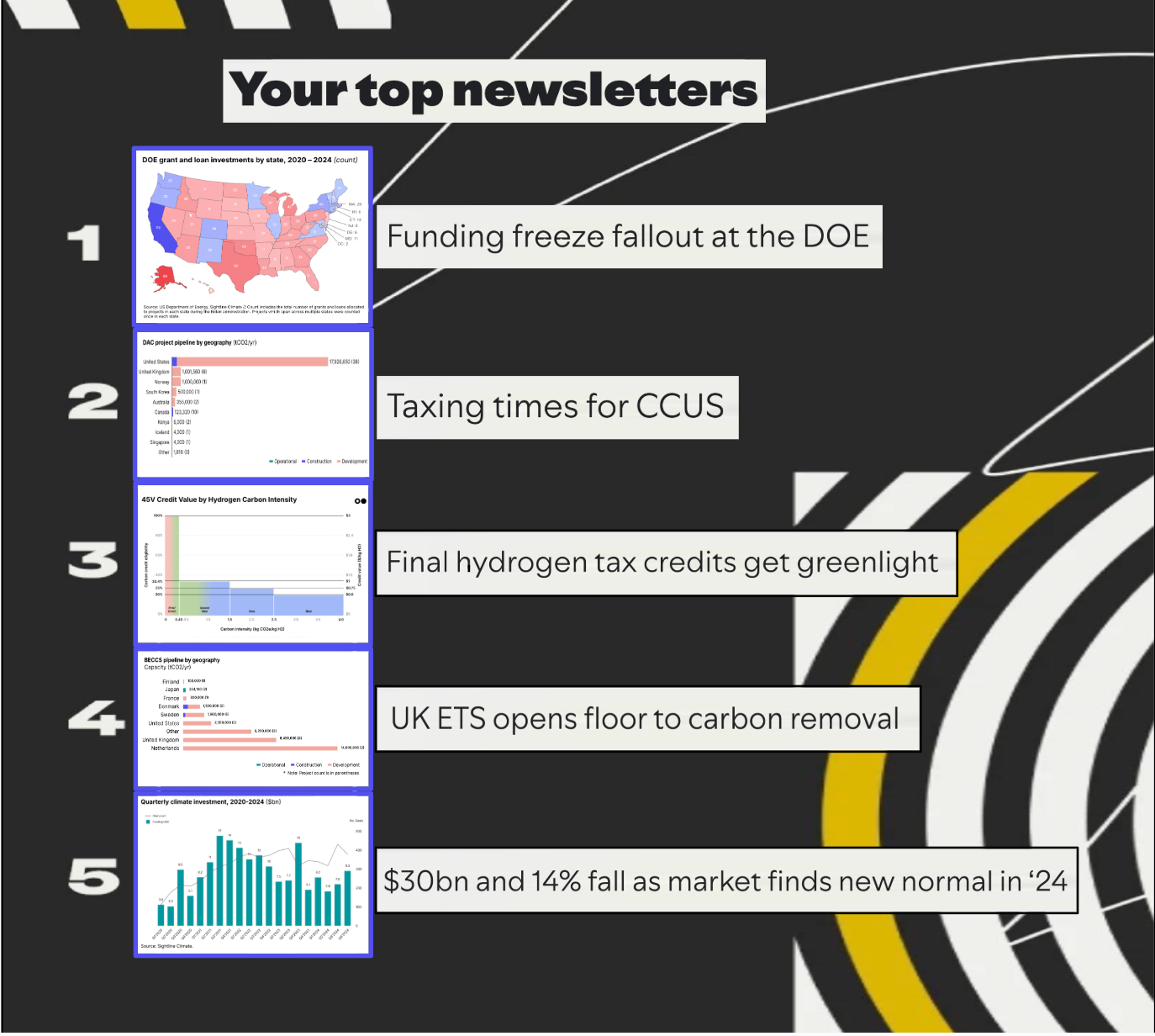 This was the one you couldnāt put down. Your top read: Funding freeze fallout at the DOE, from February. This was our The Times They Are A-Changin:ā exploring some of the first big changes that the Trump 2.0 administration made after inauguration. We dove into what the $145bn in federal loans and grants were for, and where they were. Of course, it was a bit of a harbinger: Washington uncertainty dominated throughout the year.