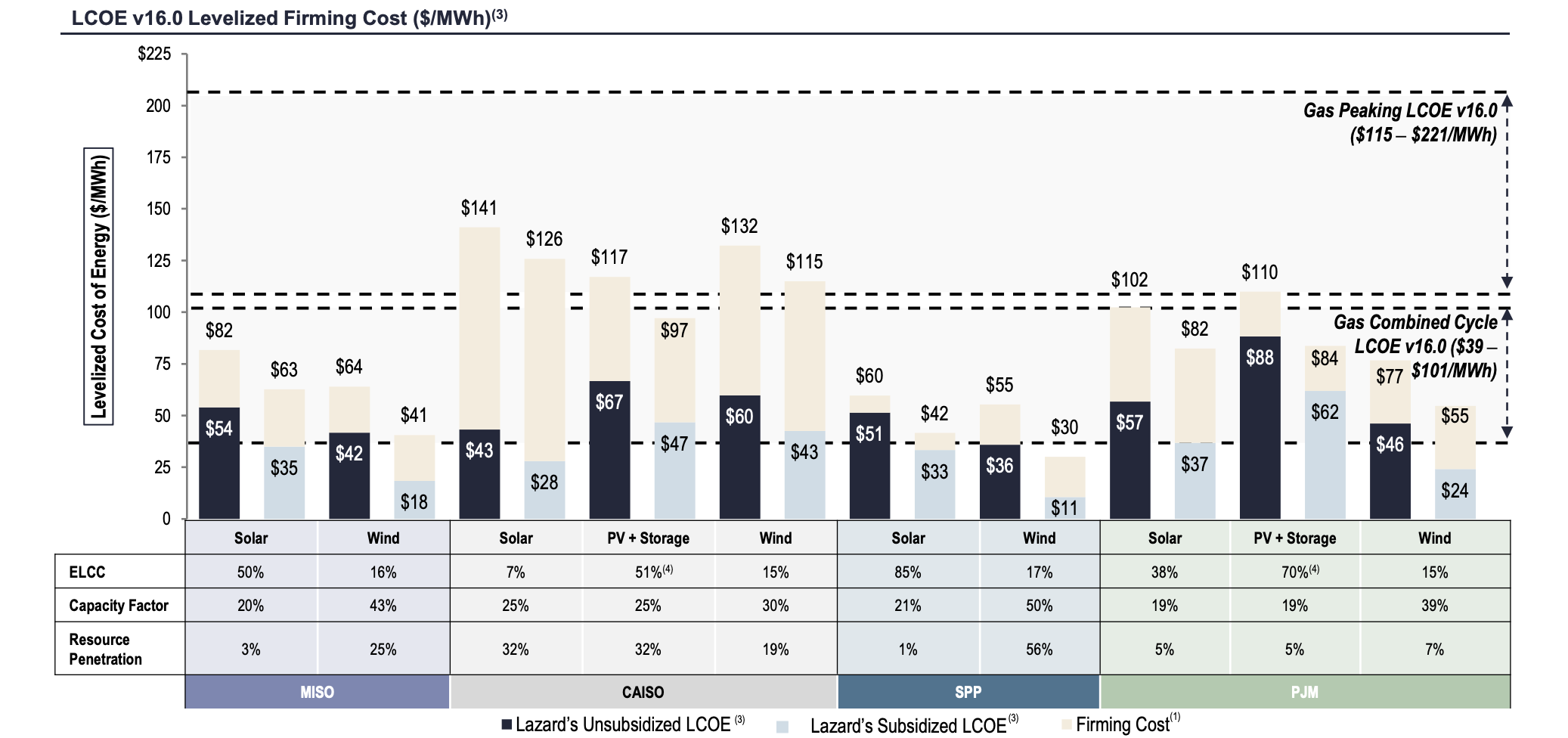 🤓 This report accounts for the cost of “firming intermittency,” which helps provide a more realistic picture of the cost of renewable energy resources.