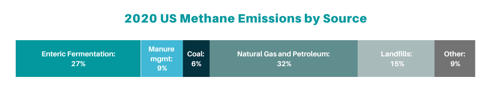 Compared to the haystack of distributed sources of CO2 emissions, CH4 accounting pencils out a much simpler story. All fingers point to agriculture as the largest source of anthropogenic methane emissions, with oil & gas production a close second (remember our O&G methane feature with Crusoe Energy?) Cow burping alone makes up a whopping ~30% of methane emissions, or ~10% of global GHG emission!