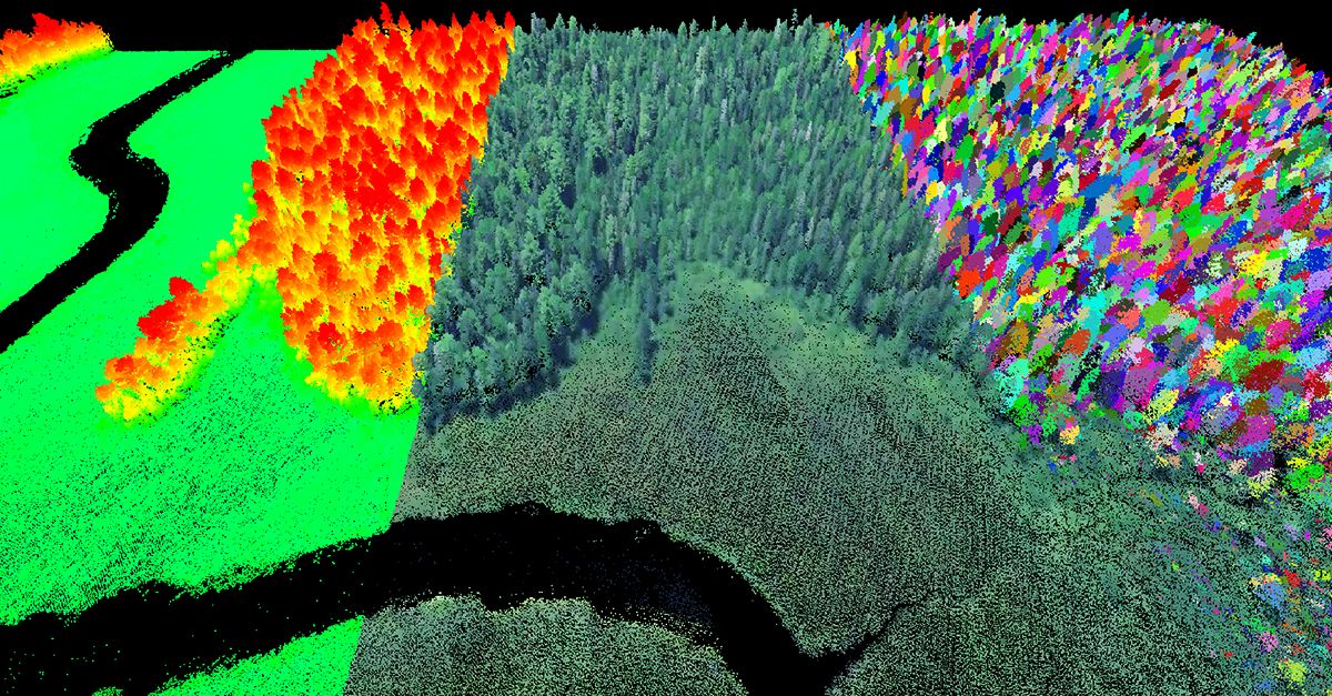 Forest viewed through satellite imagery and LiDAR. Source: Pachama