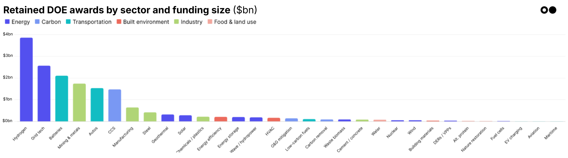 This week, the Department of Energy released a list of the 1,951 Biden-era grants it plans to "retain or modify," representing over $23bn in funding awarded under the Inflation Reduction Act and Bipartisan Infrastructure Law. We’ve got a closer look at what was kept, what was cut, and what’s still unclear in this new portfolio reconstruction.