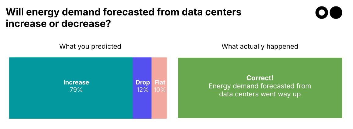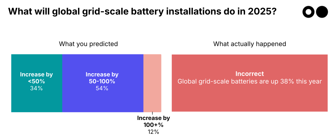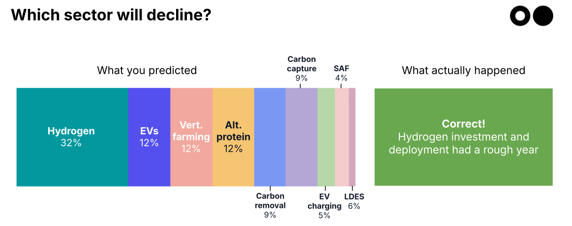 Read on to see how your predictions stacked up. We used expert sources to verify, and some of the data to back up the numbers comes from our 2025 Climate Tech Investment Trends report, coming next month, so you’re getting a sneak peek.