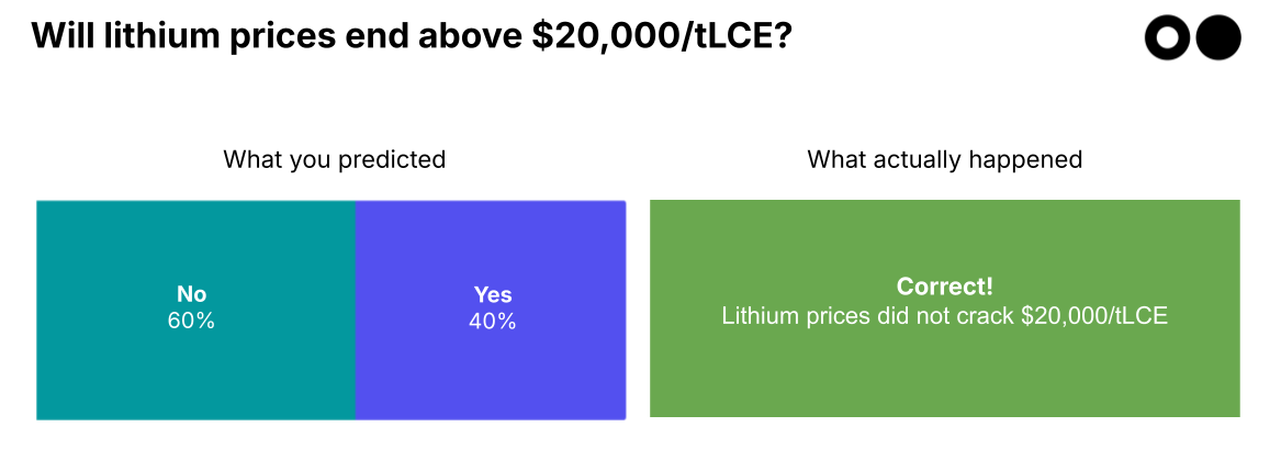 Outcome: ✅ Correct. Prices hit a high this year of around $13,000/t LCE.