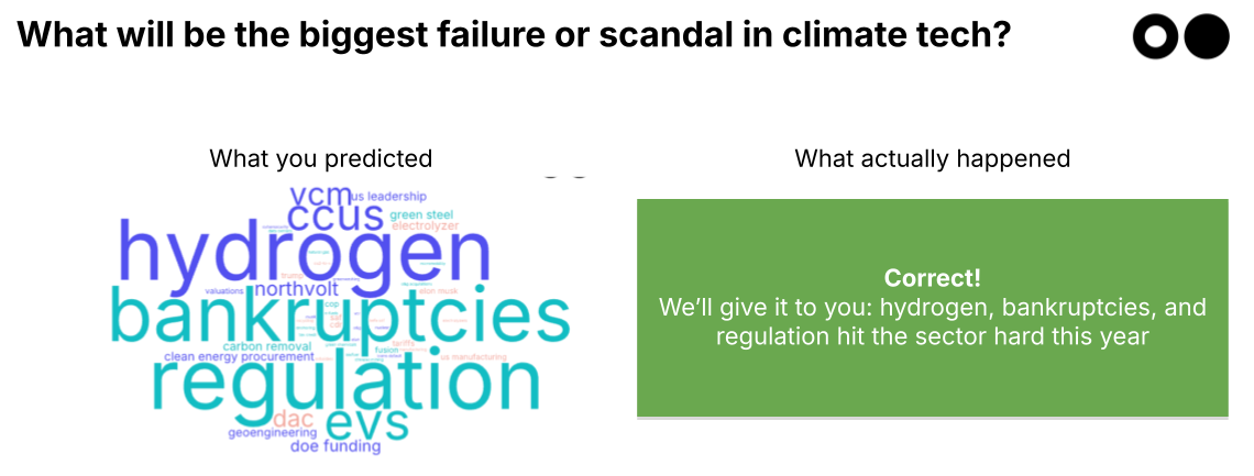 It’s been an eventful year, and stay tuned for the results of the 2026 Climate Tech Oracle. Share your predictions for the year ahead in our survey, and you’ll be entered to win a $50 gift card!