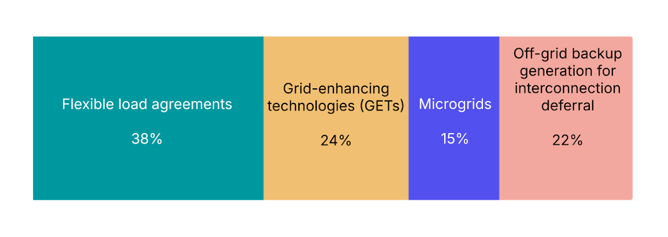 Results: Flexible load agreements rank highest. This reflects how interconnection delays are being managed in practice, as large customers need to adapt demand profiles for grid constraints.