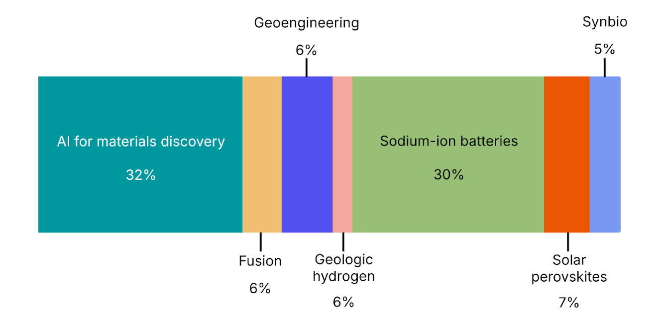 Results: Is this the year for AI for materials discovery or sodium-ion batteries? Respondents expect progress where tools shorten development timelines or reduce cost in existing systems. Some write-ins included: thermal storage, variable compute load, geothermal, AI for critical mineral recovery and grid optimization, and non-lithium-ion, non-sodium-ion storage.